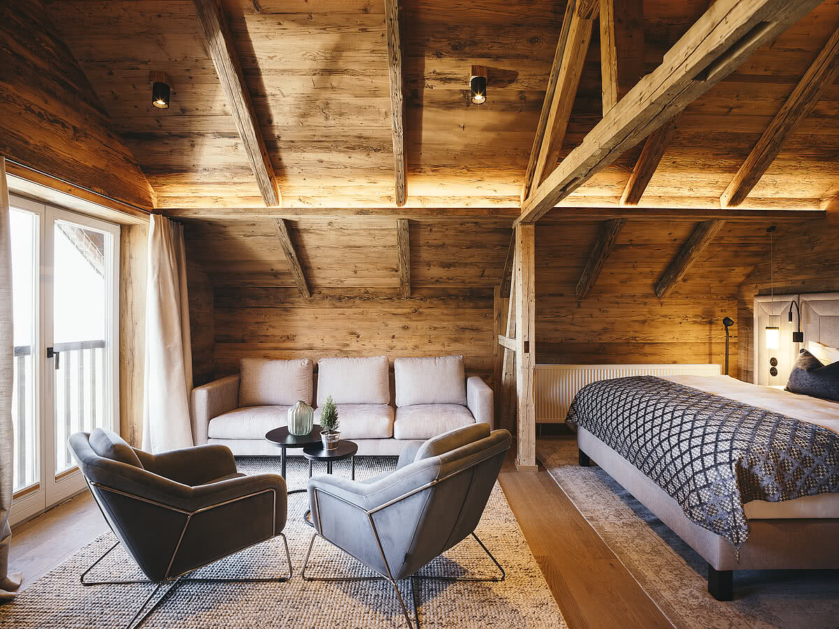 Unsere moderne, großzügige Suite Talblick im obersten Stockwerk, ist wohl einer der schönsten Orte, um über Pfronten zu blicken und die majestätische Bergkulisse zu genießen.